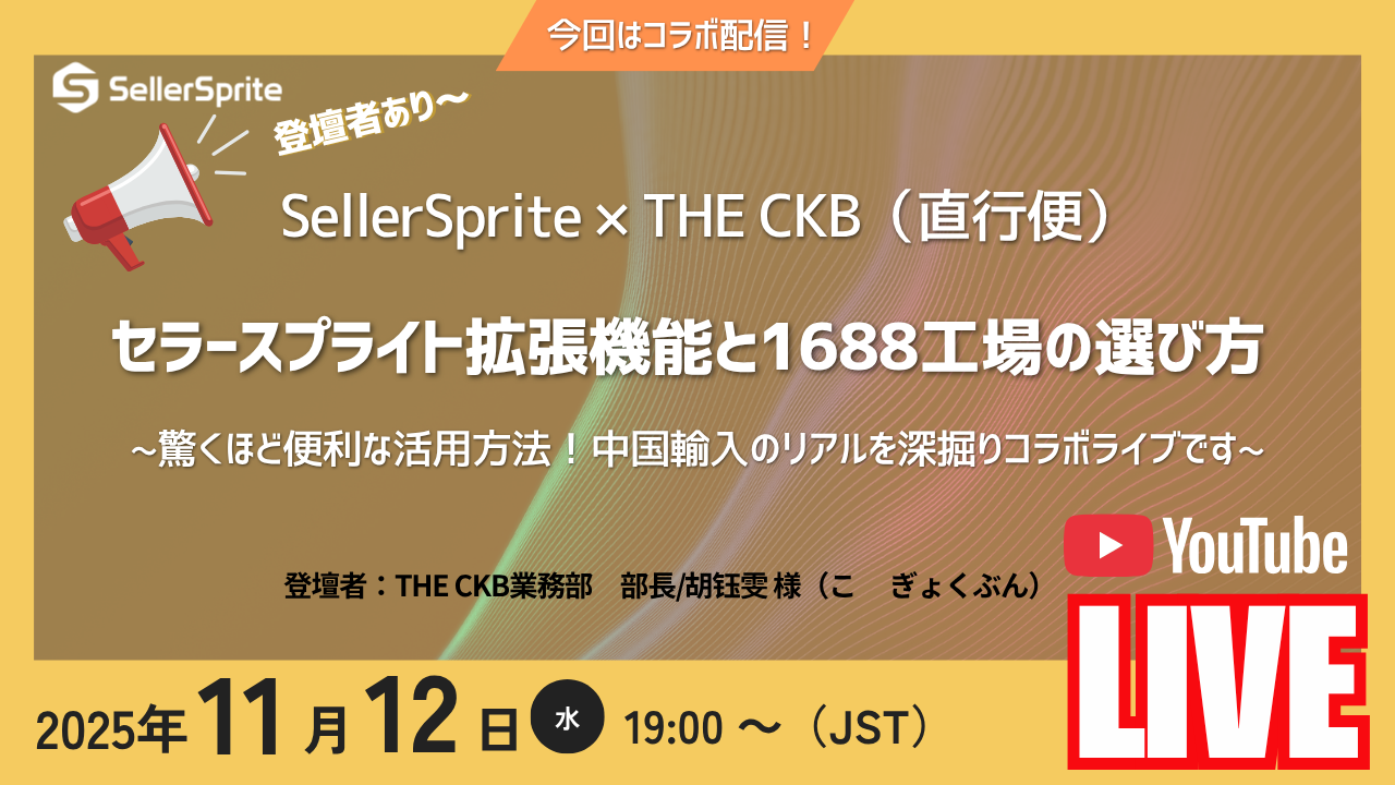 配信時間:2025-11-12 19:00 講師:胡钰雯(こ ぎょくぶん)様 4年にわたり中国輸入支援の第一線で活躍。中国現地での仕入れ交渉からOEM・ODM生産管理、国際物流までを一貫して手がけ、これまで数百ブランドの立ち上げを支援。 日本市場のトレンドに精通し、現場で培ったリアルな経験と豊富な事例をもとに、「売れるブランドの作り方」を実践的に解説する。